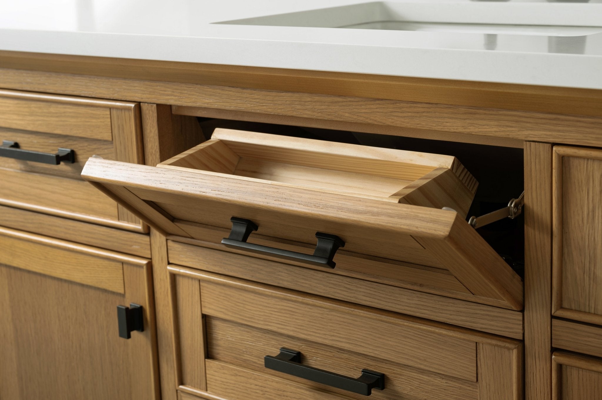 Milano 54" Single Sink Vanity with White Quartz Top - Design Element Bath Kitchen - Bathroom Vanity - Heritage Oak with Matte Black Hardware
